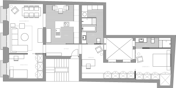 La premisa fundamental a la hora de realizar el proyecto fue la restructuración del orden general de la casa, en el que la prioridad fue conectar visualmente los distintos espacios, aprovecharla luz natural que entraba por la fachada principal y conseguir una configuración abierta y flexible.