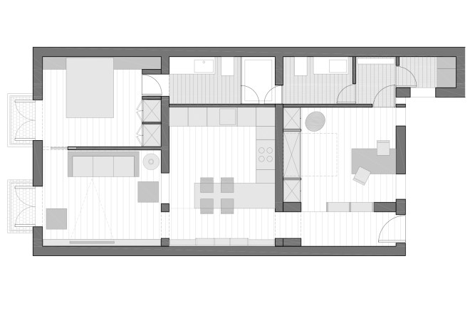 El cliente, dudaba de las posibilidades de una casa tan antigua a su modo de vida. Pero el proyecto transformó la antigua distribución de la vivienda en una configuración abierta y flexible, donde todos los espacios estaban convenientemente ventilados e iluminados, ajustándose a los requerimientos del cliente.